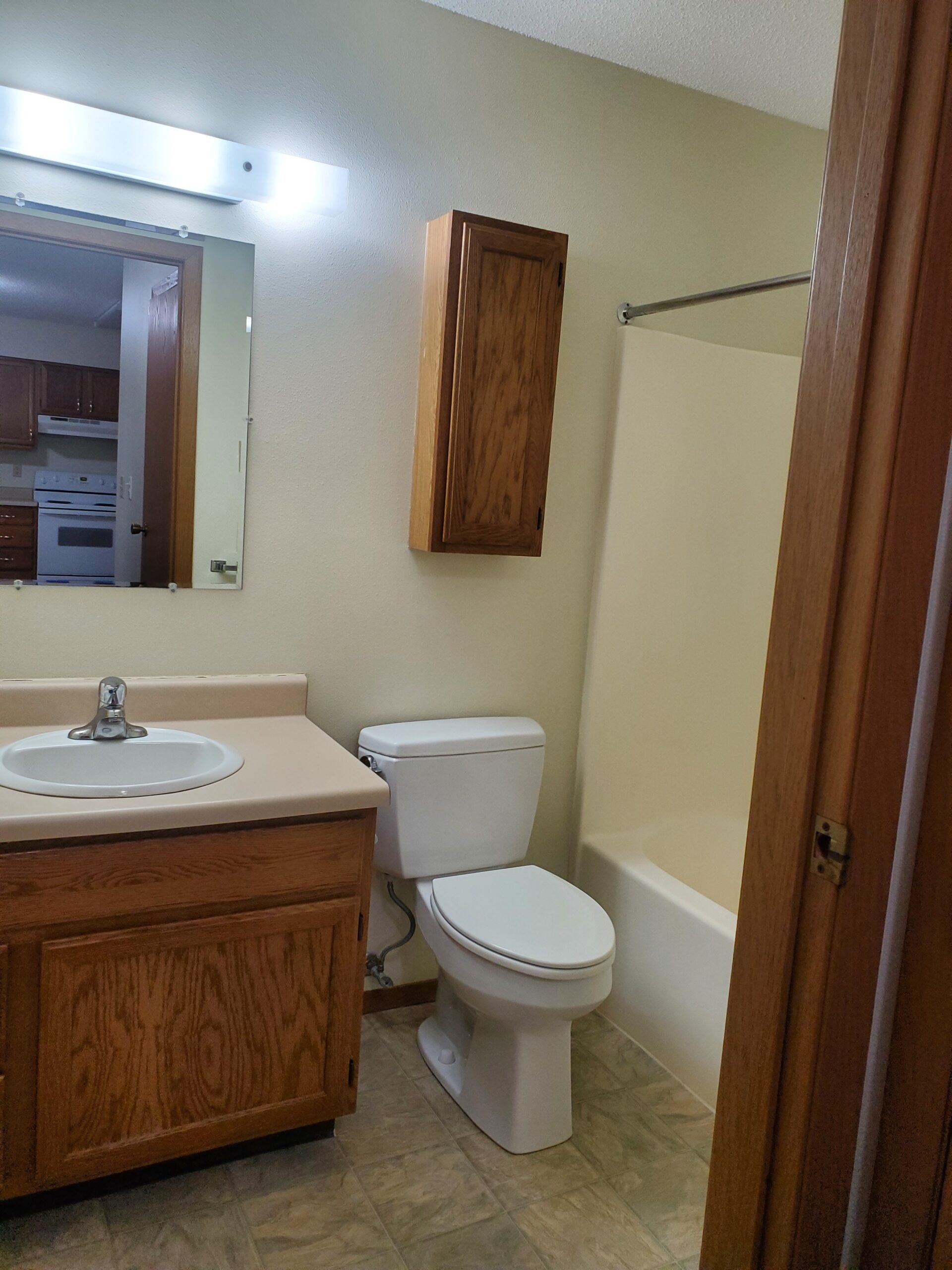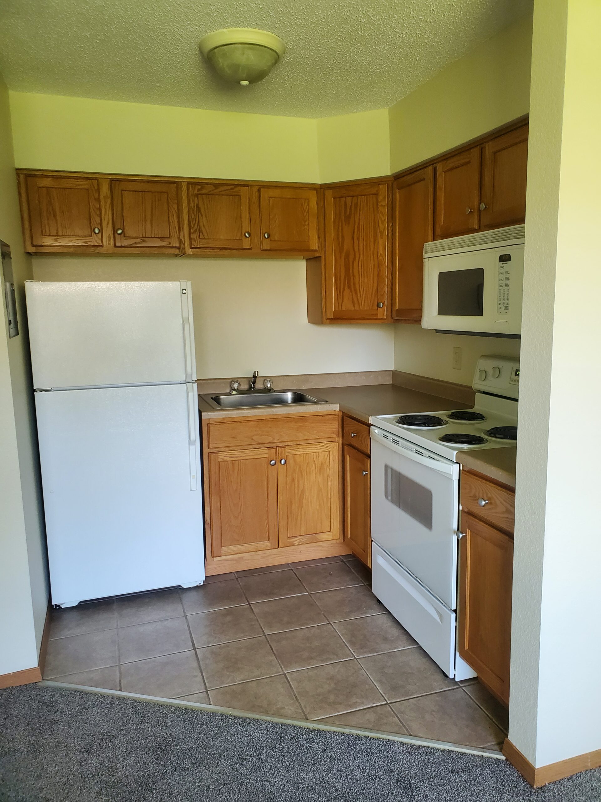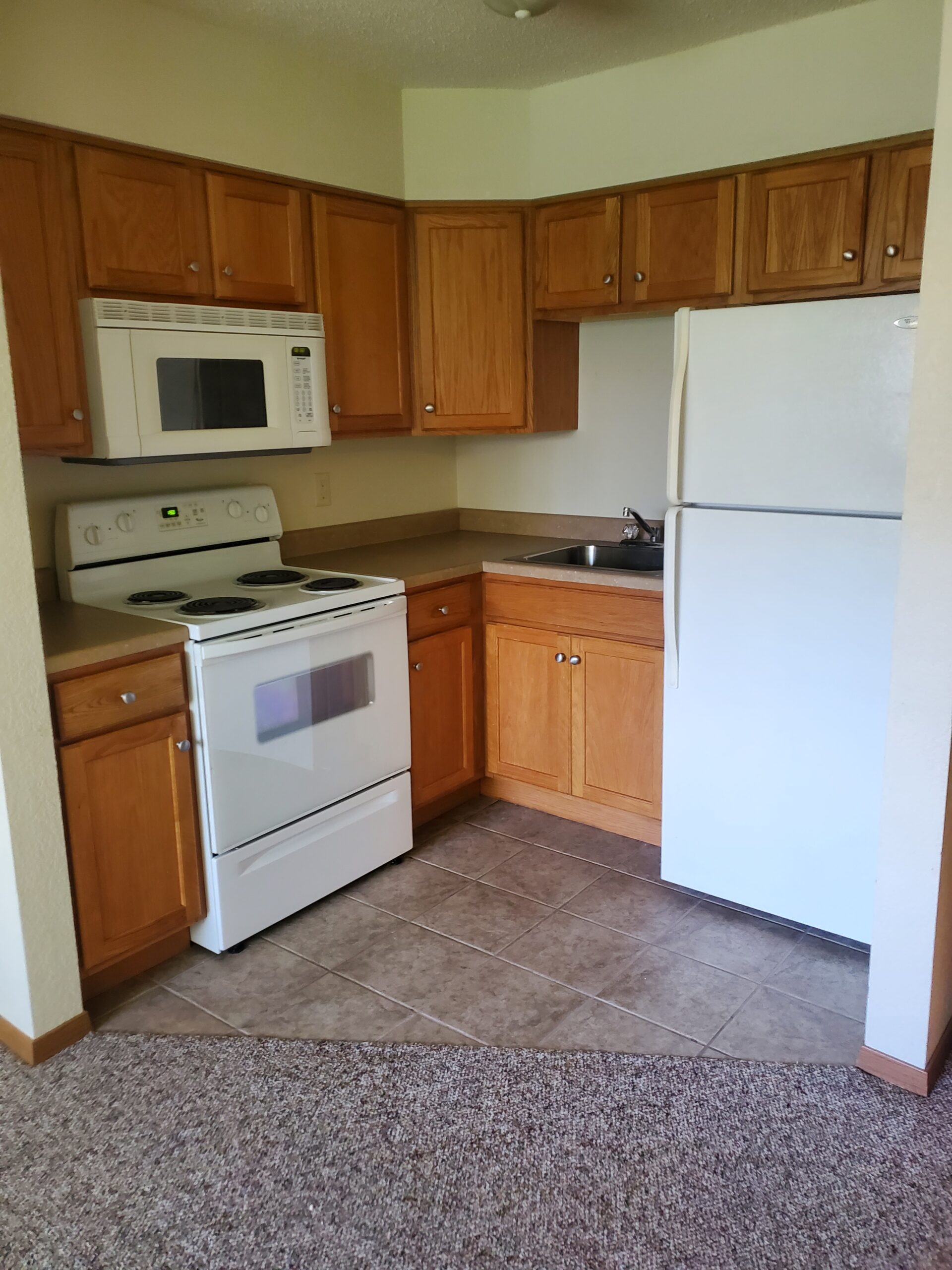 - Full size range, microwave oven, refrigerator