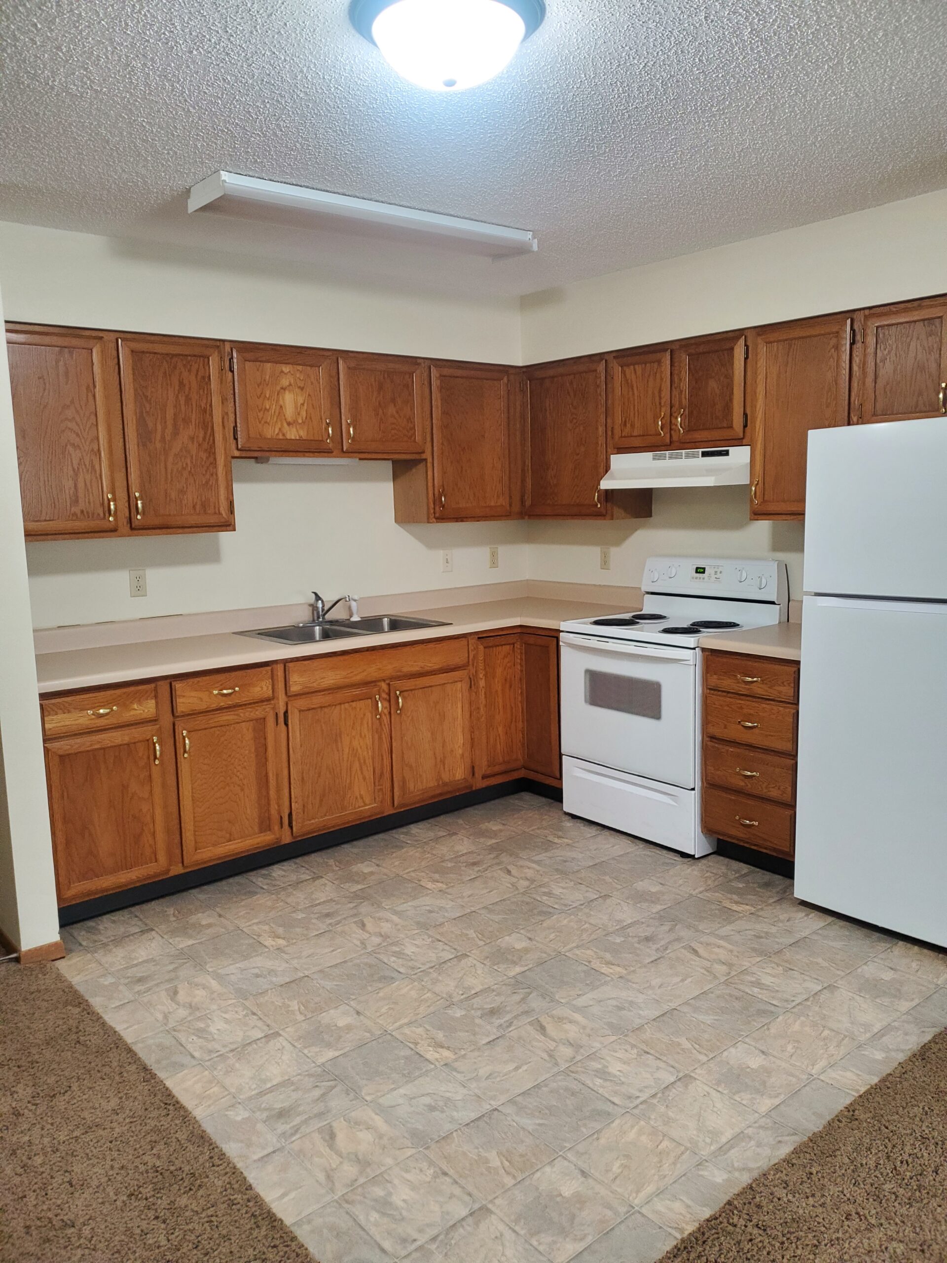 - Full size range and refrigerator